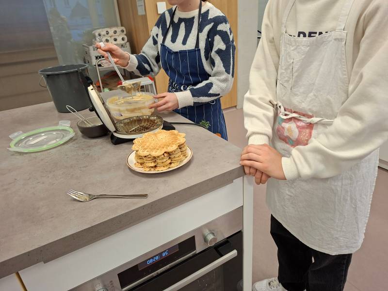 Am 23.01.2026 lockte ein angenehmer Waffelduft in der Pause alle in den Eingangsbereich unserer Schule. Dort wurde man mit interessanten Informationen über den Deutsch-Französichen Tag versorgt und konnte sich dabei eine leckere selbstgemachte Waffel schmecken lassen. Die Schülerinnen und Schüler der Wahlplichtfächergruppen (IIIa/IIIb) mit Frau Kraus-Schadl und Frau Bader luden dazu herzlich ein.