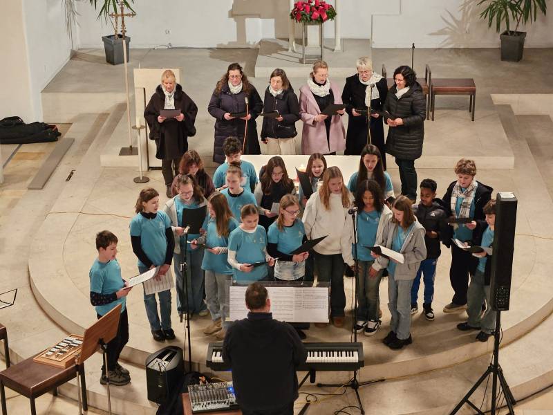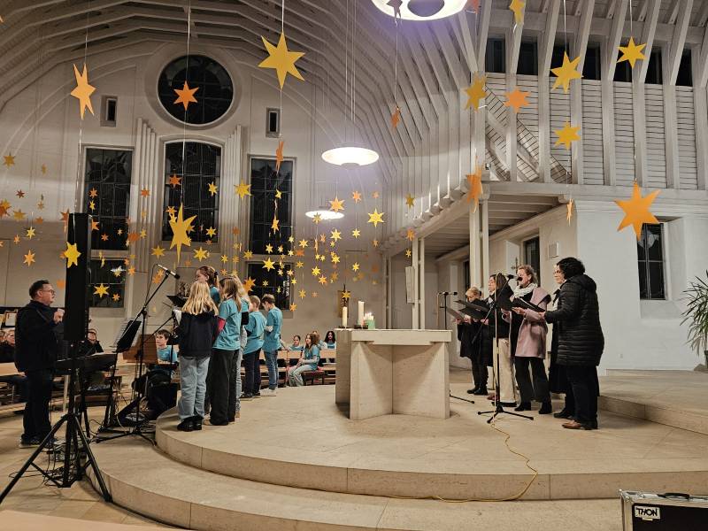 Feierlicher Auftakt und Mittelpunkt war eine Wort-Gottes-Feier mit Bischof Dr. Bertram Meier. Lukas Mayer, ehemaliger Schüler des Maria-Ward-Gymnasiums Augsburg und Musical-Darsteller, umrahmte gemeinsam mit einem großen Lehrerchor und einer Lehrer-Big-Band stimmgewaltig und bewegend den Gottesdienst musikalisch. Besonders beeindruckend war dabei der Rollentausch: Diesmal standen nicht die Jugendlichen auf der Bühne, sondern ihre Lehrerinnen und Lehrer – und sie begeisterten mit sichtbarer Leidenschaft und musikalischer Professionalität. Es war ein Moment, der berührte, weil er zeigte, wie viel Herzblut und Gemeinschaft im Schulwerk stecken.
