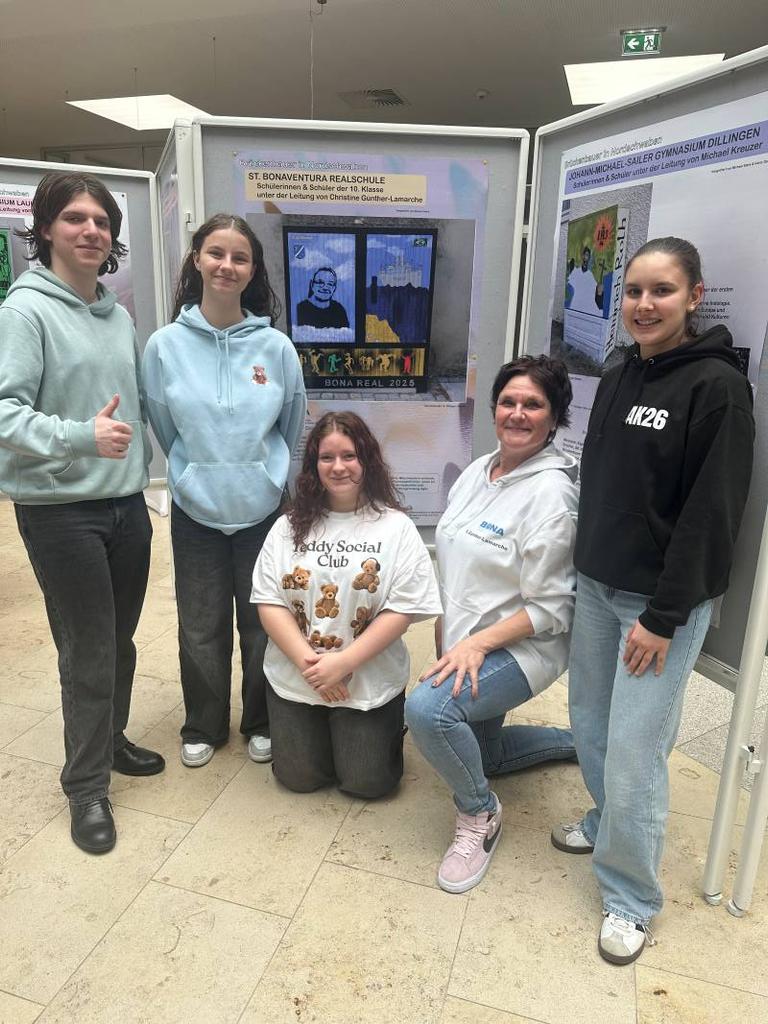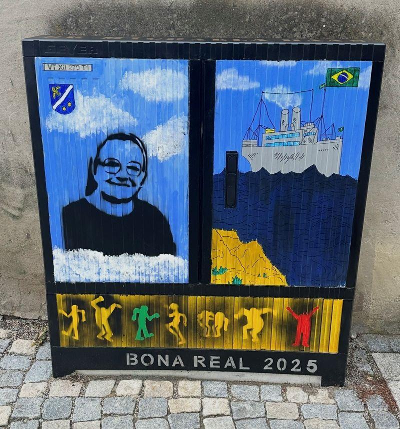 Schülerinnen und Schüler der 10. Kl. aus dem Wahlfach Kreativwerkstatt nahmen im Herbst 2025 am Brückenbauprojekt des Landkreises und Kultur und Wir teil. Es entstanden in verschiedenen Landkreisen phantasievoll besprühte Trafokästen, die sich am Vorbild des französischen StreetArt-Künstlers Christian Guémy orientierten und zum Thema die Darstellung wichtiger Persönlichkeiten des Landkreises hatten. Das von der Bona Realschule gestaltete Objekt zeigt Sr. Michaela Haas, eine Franziskanerin, die viel zum Wohl von Kindern in Brasilien getan hat. Der inzwischen sehr bunte Kasten befindet sich in der Konviktstraße gegenüber der Basilika am Gelände des Bonacampus.